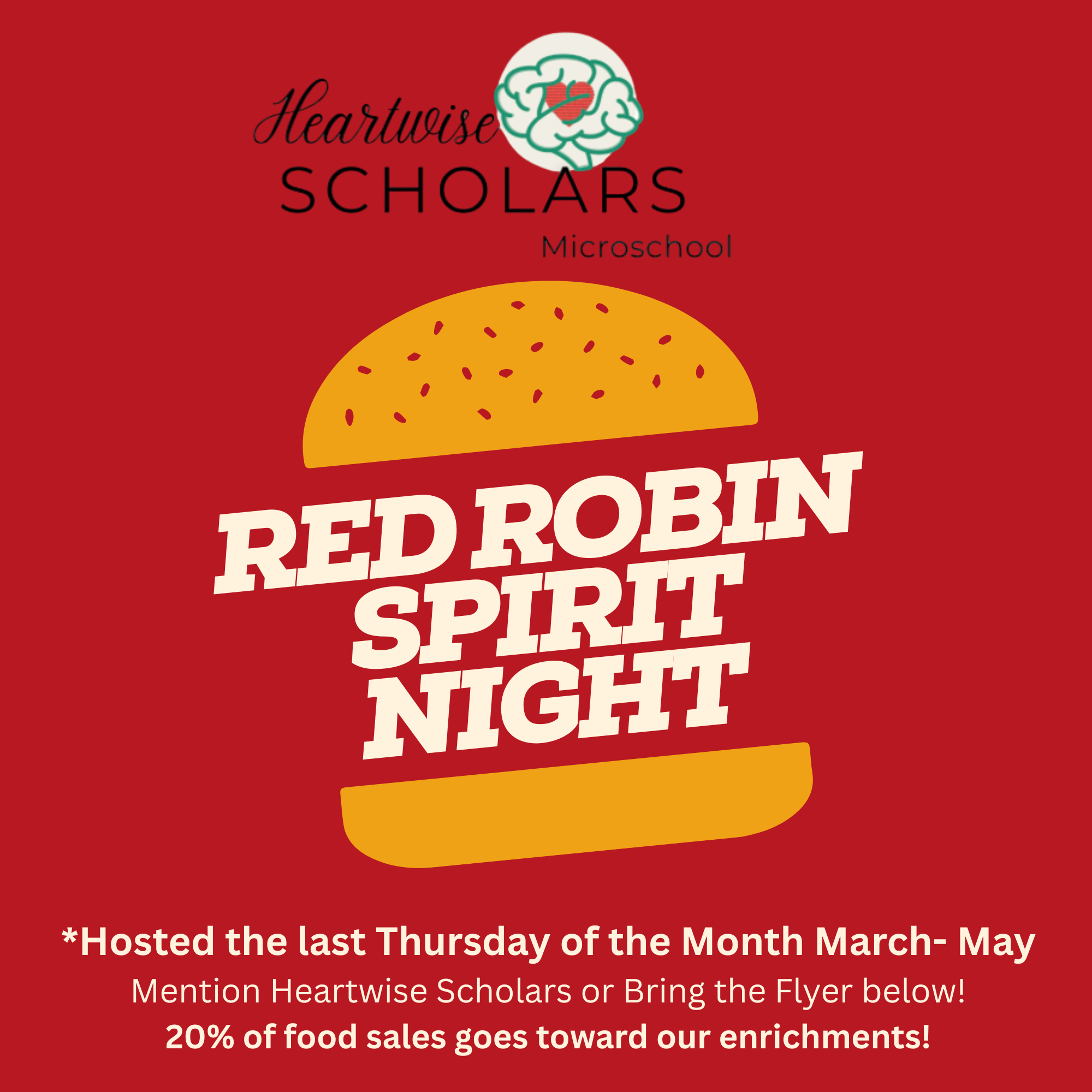 As a nonprofit, Heartwise Scholars is grateful to partner with Red Robin for a monthly Spirit Night fundraiser.