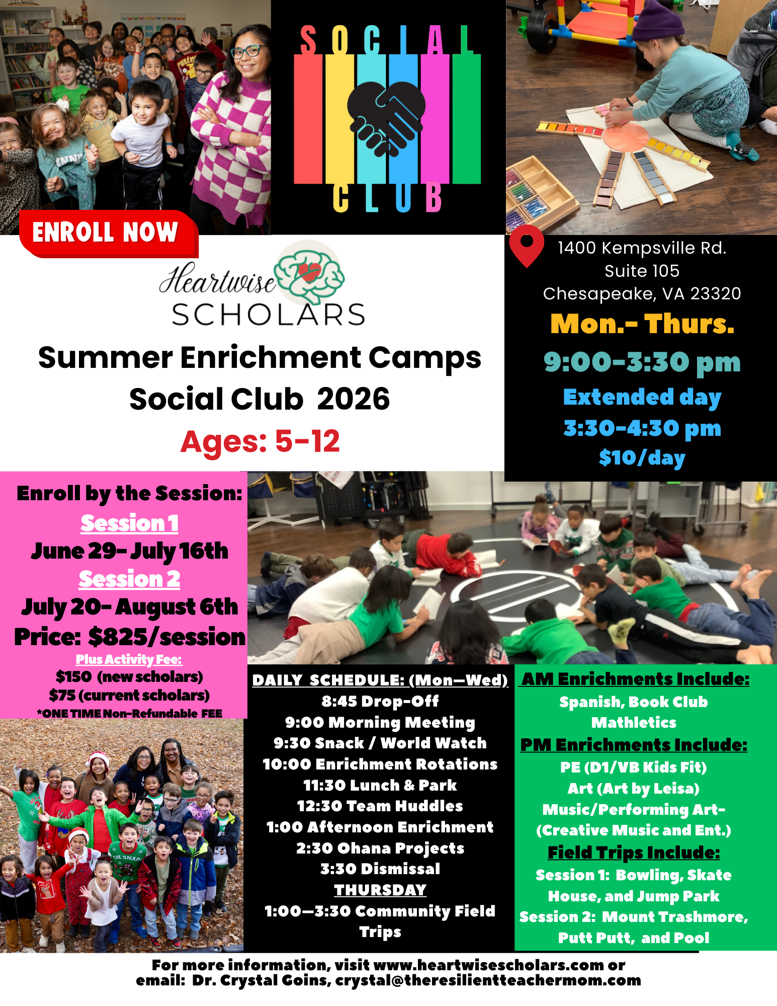 Cost: $825/session and a one-time activity fee $150 (new scholars) and $75 (current scholars)